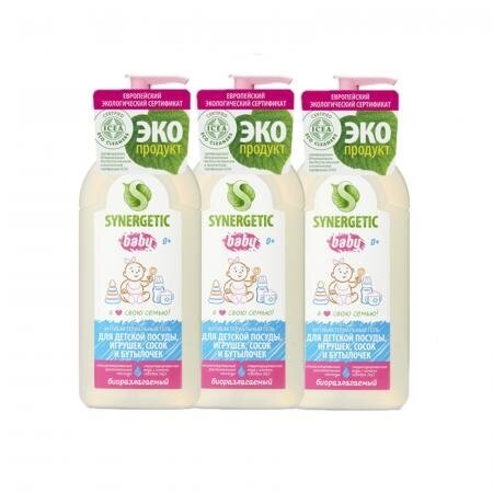 Купить 3 Шт. -Synergetic Средство концентрированное для мытья детской посуды, сосок, бутылочек и игрушек, 500 мл (4623722258274)