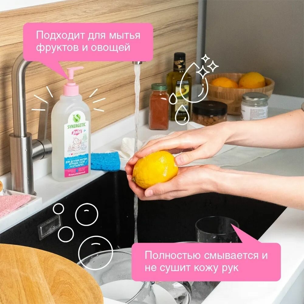Synergetic Средство концентрированное для мытья детской посуды, сосок, бутылочек и игрушек, 500 мл