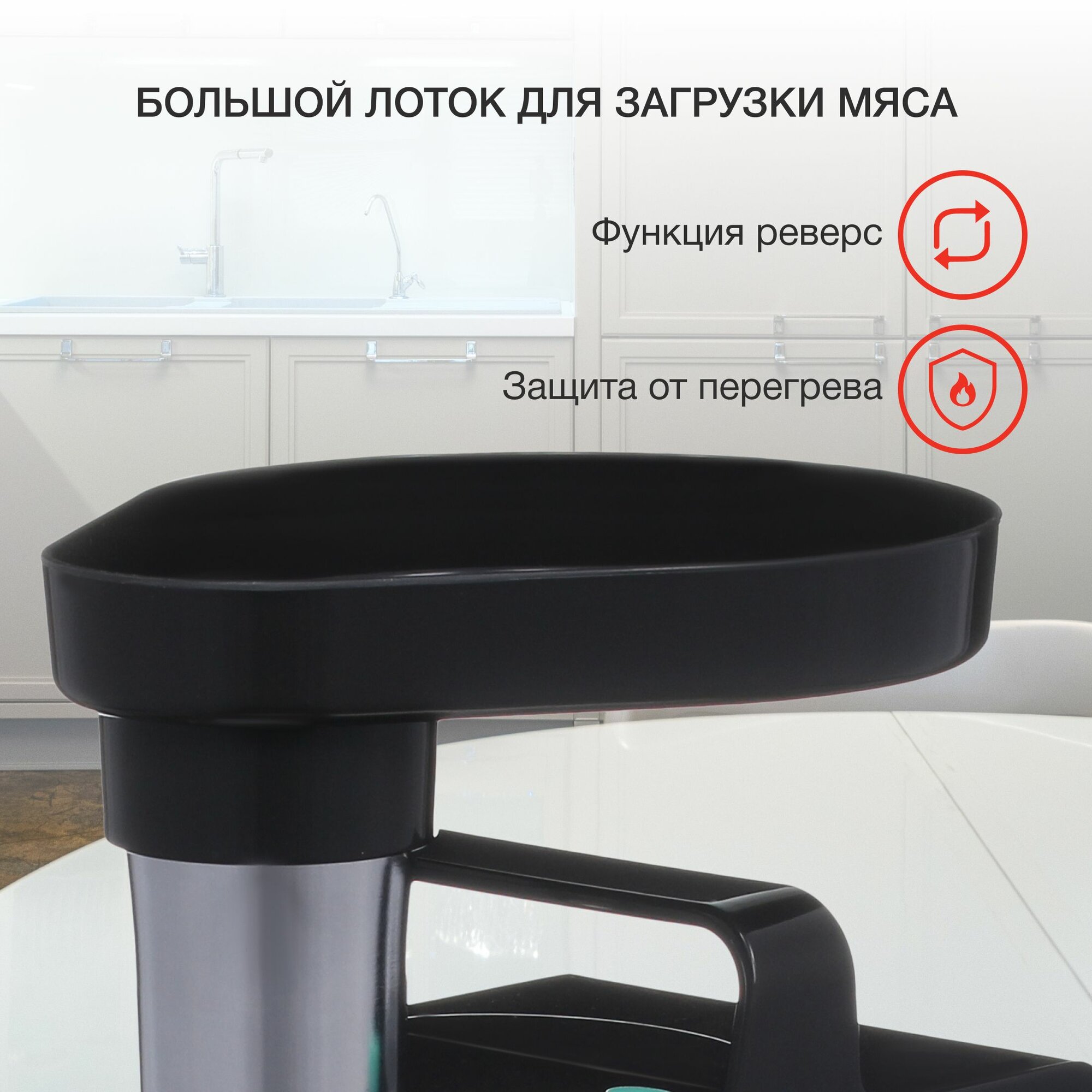 2) Мощная, справляется с жилистым мясом и хрящиками. 3) Лоток для мяса большой, легко проходят средние куски. |
