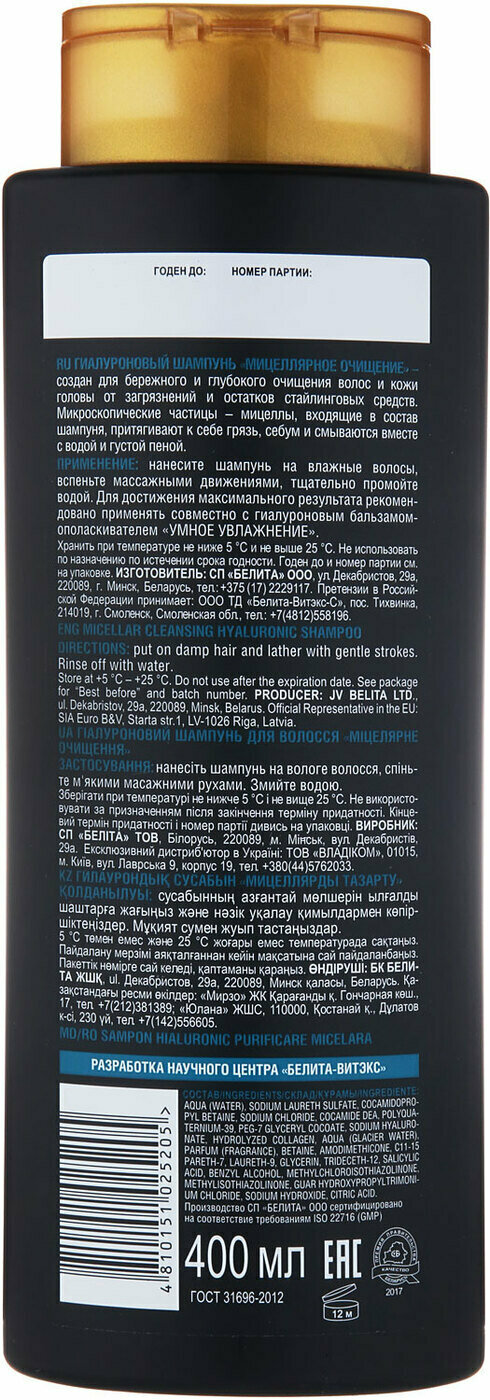 Купить Белита "Сила гиалурона" Гиалуроновый шампунь "Мицеллярное очищение" 400 мл. (Витекс)