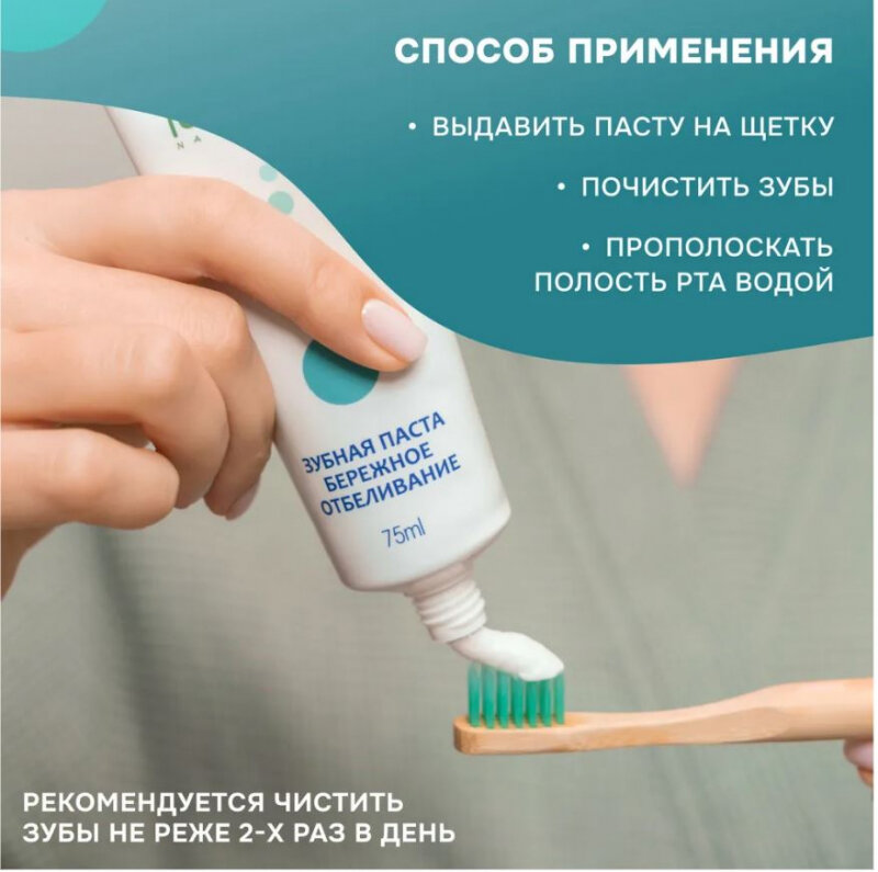 Зубная паста Levrana Бережное отбеливание без фтора, 75 мл интересное: