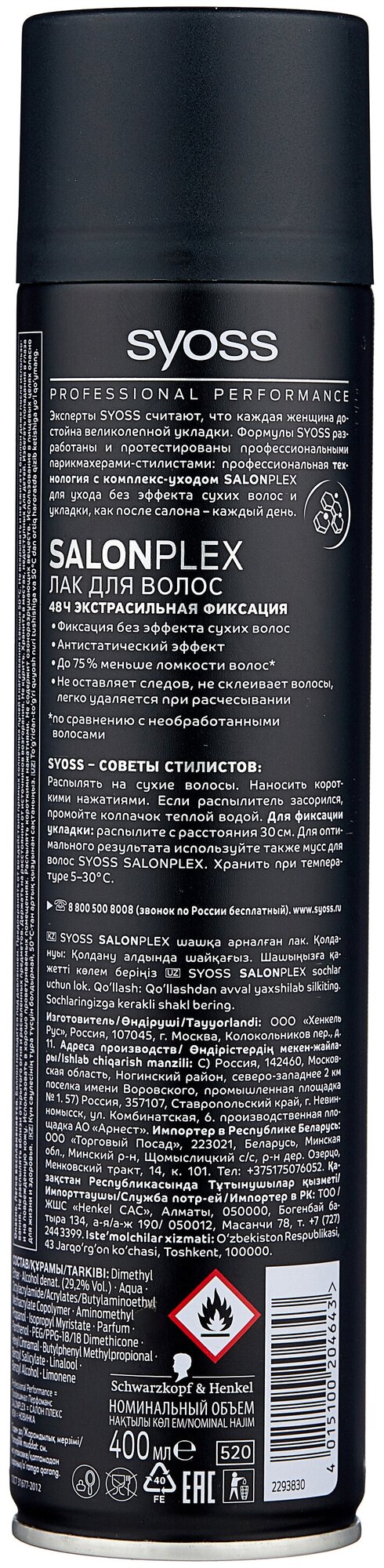 Купить Сьосс / Syoss Salon Plex - Лак для волос фиксация 4, 400 мл