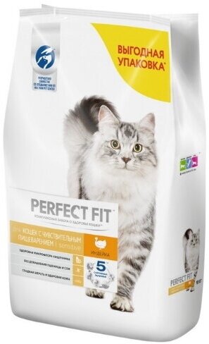 Корм сухой для взрослых кошек PERFECT FIT с индейкой, с чувствительным пищеварением, полнорационный, 2,5кг