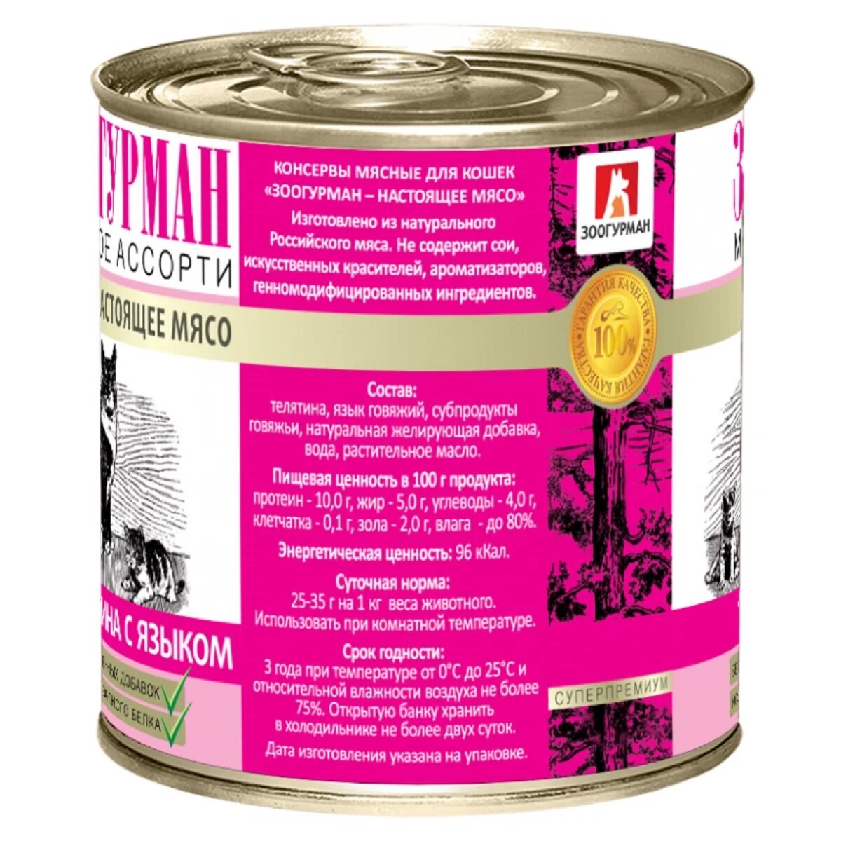 Зоогурман консервы для кошек Мясное ассорти Телятина с языком 250г