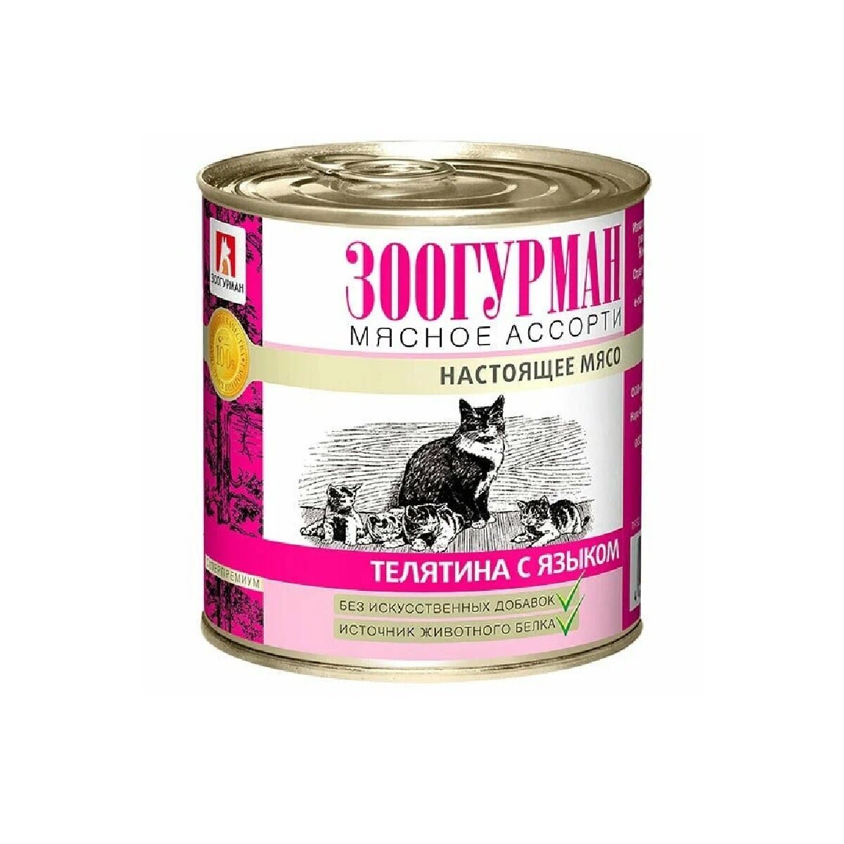 Зоогурман консервы Мясное ассорти Телятина с языком для кошек, 250 гр.
