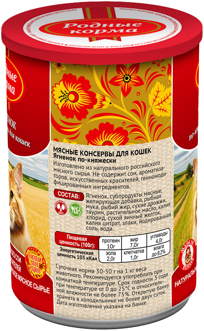 Родные корма Консервы для кошек ягненок по-княжески 64559, 0,41 кг, 34200 (34 шт)
