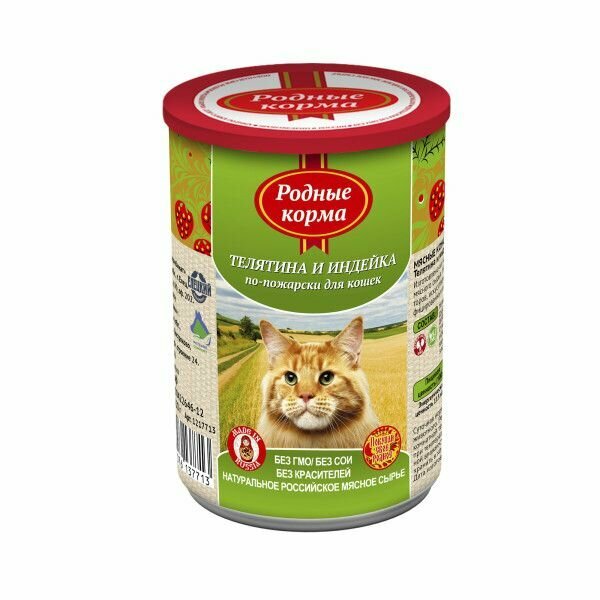 Родные корма Консервы для кошек телятина и индейка по-пожарски 64557, 0,41 кг, 34199 (26 шт)