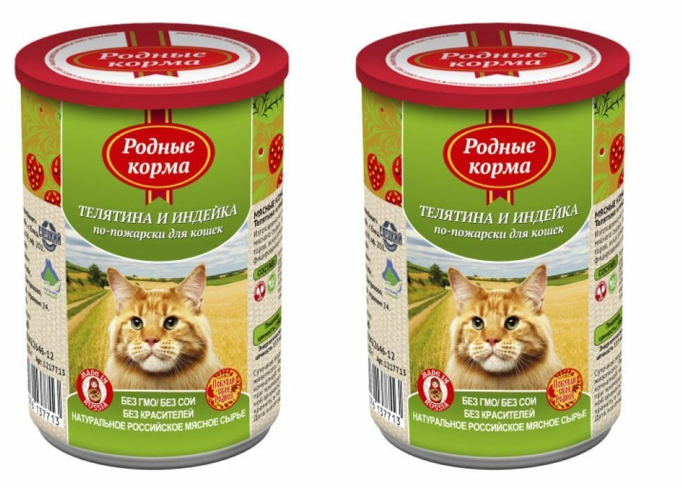 Родные корма Консервы для кошек телятина и индейка по-пожарски 64557 0,41 кг 34199 (2 шт)