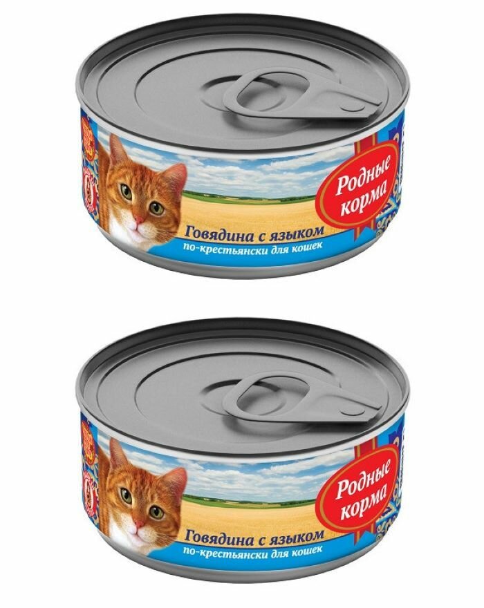 Родные корма Консервированный корм для кошек Говядина с языком по-крестьянски 100 г0 (2 шт)