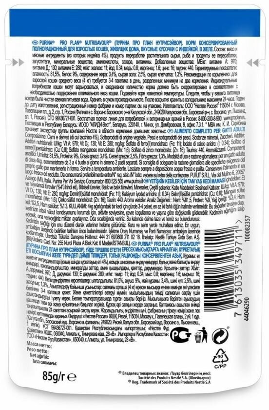 PURINA Pro Plan NutriSavour Housecat Пауч д/кошек с Индейкой в желе 85 г