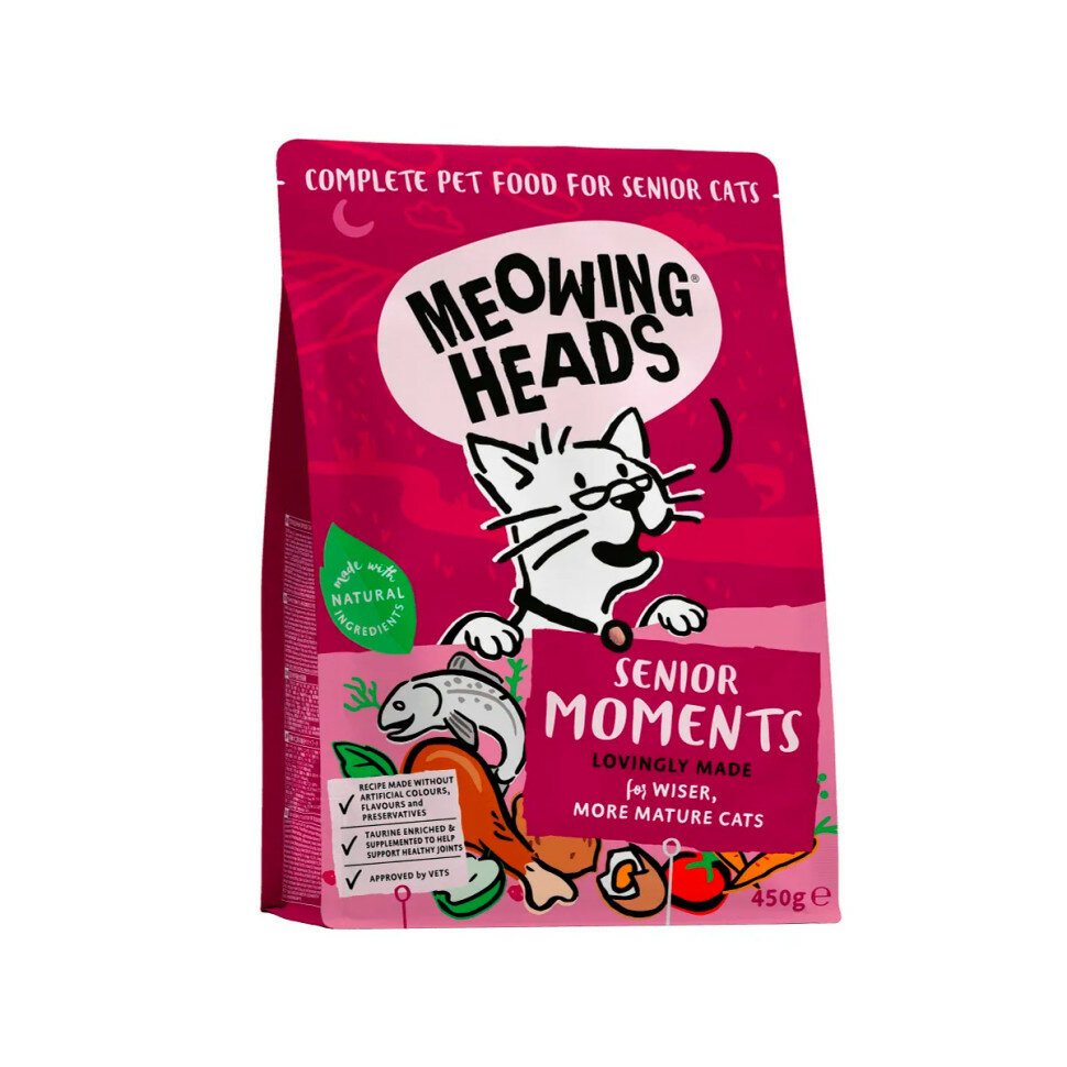 Сухой корм Meowing Heads Senior Moments для пожилых кошек старше 7 лет с лососем и яйцом - 450 г