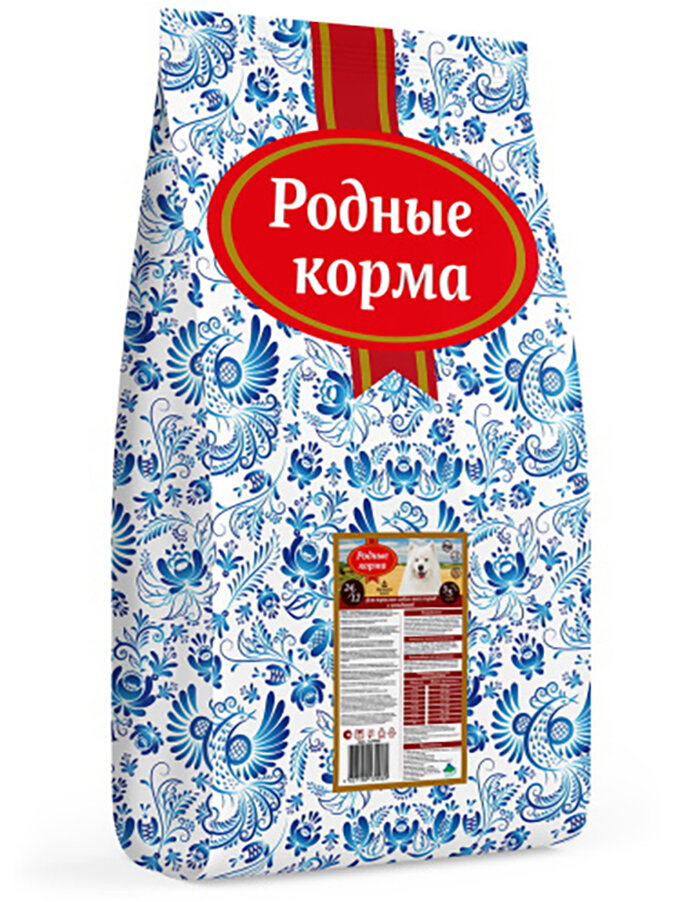 Корм сухой Родные Корма 22/10 5 русских фунтов для взрослых собак, с говядиной 2,045 кг