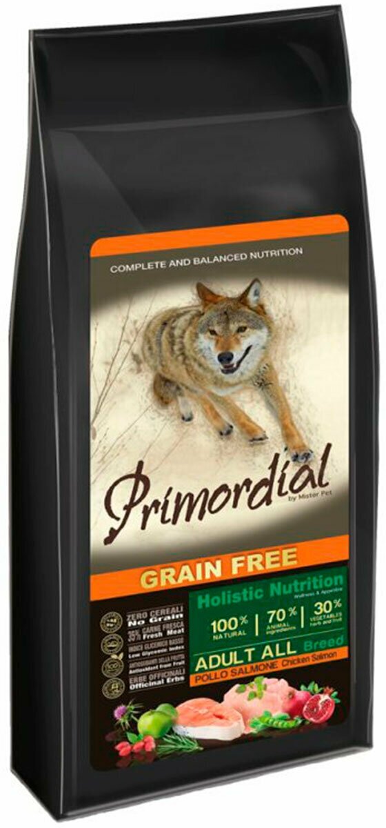 PRIMORDIAL ADULT ALL BREED беззерновой для взрослых собак всех пород с курицей и лососем (12 кг)