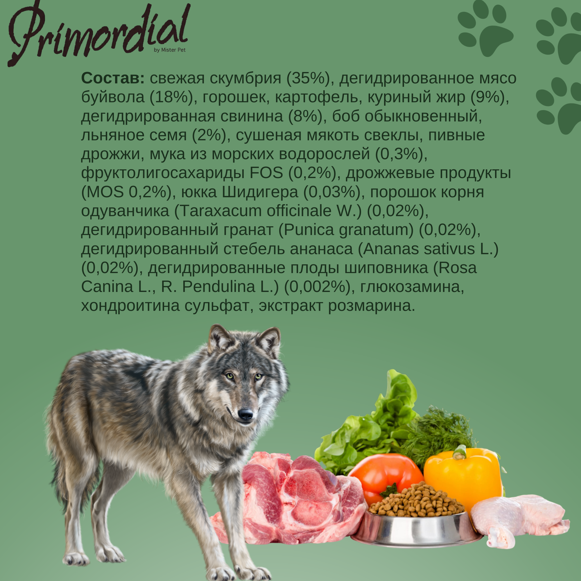 Купить PRIMORDIAL 2кг сухой корм для собак беззерновой буйвол макрель 1 шт