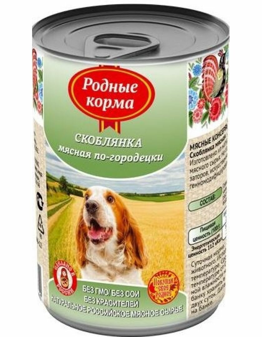 Влажный корм родные корма консервы для собак Скоблянка мясная по-городецки 410 гр