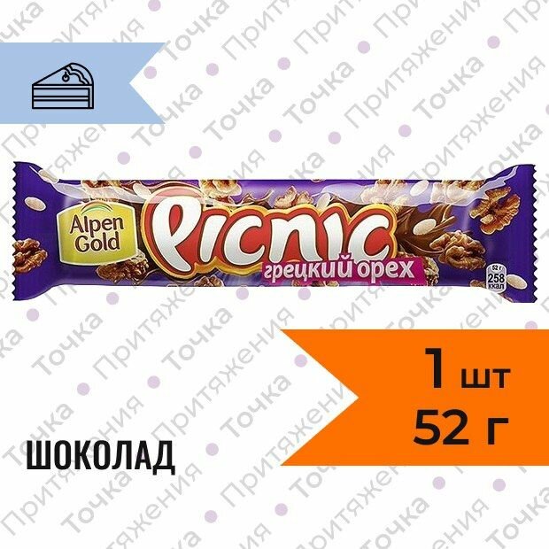 Шоколадный батончик PICNIC Грецкий орех, 52г