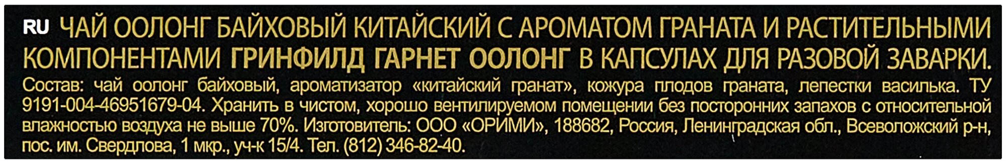 Greenfield чай оолонг в капсулах Гарнет Оолонг 2,5г*10п для Nespresso интересное: