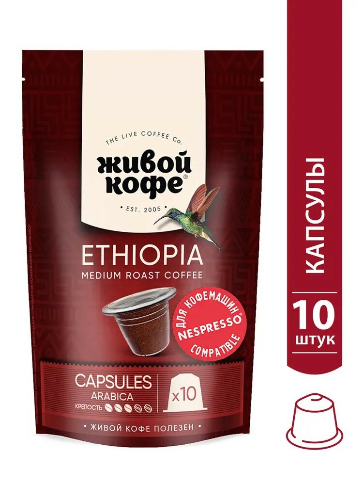 Купить Капсулы Живой кофе Ethiopia Sidamo для кофемашины Nespresso (неспрессо)50 гр (10 капсул по 5 гр)