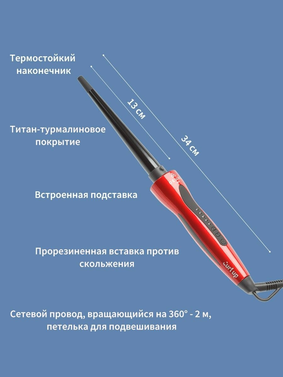 Плойка для волос конусная Dewal 03-1019R Curl Up с терморегулятором, титан+турмалин d 10-19 мм 120-200 C 45 Ватт