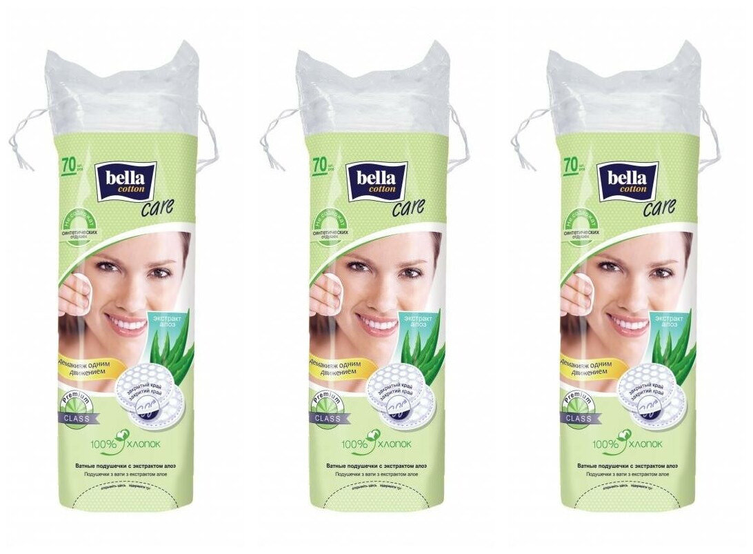Ватные диски bella cotton care с экстрактом алоэ 100% хлопок, 70 шт.