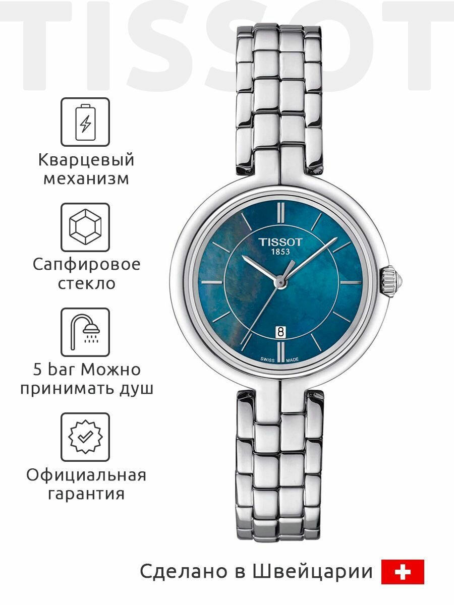 Швейцарские кварцевые часы Tissot Flamingo T094.210.11.121.00 на стальном браслете, с водозащитой 5 бар и международной гарантией от производителя