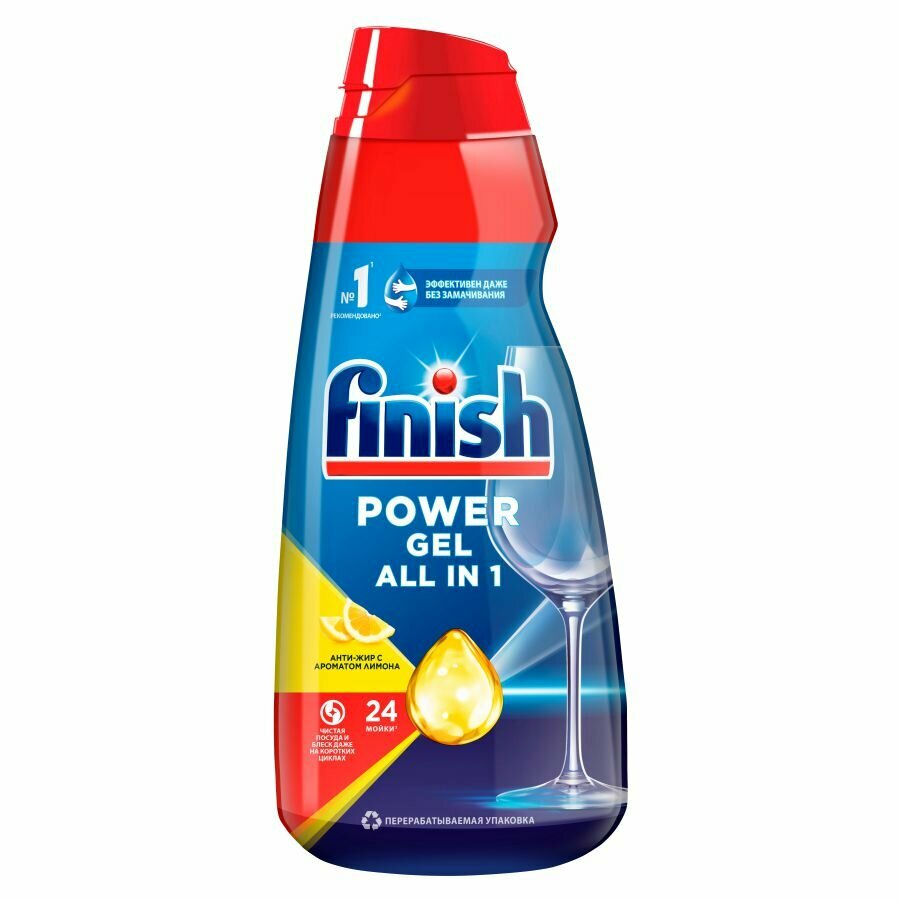 FINISH Гель для посудомоечной машины Power gel All in 1 Антижир с ароматом лимона, 600 мл