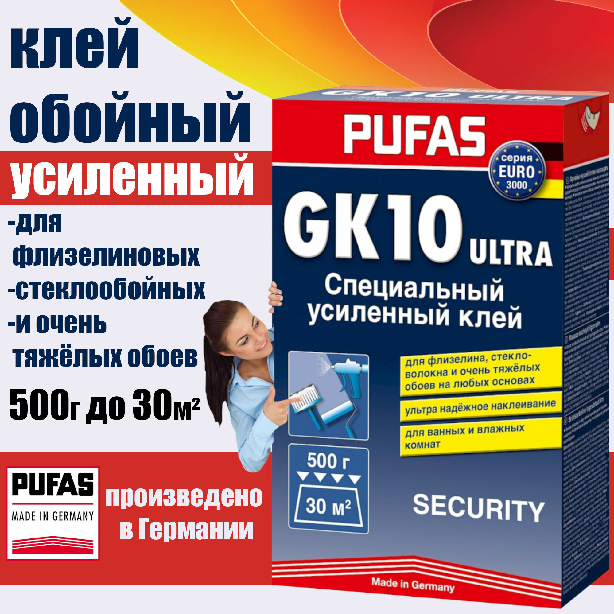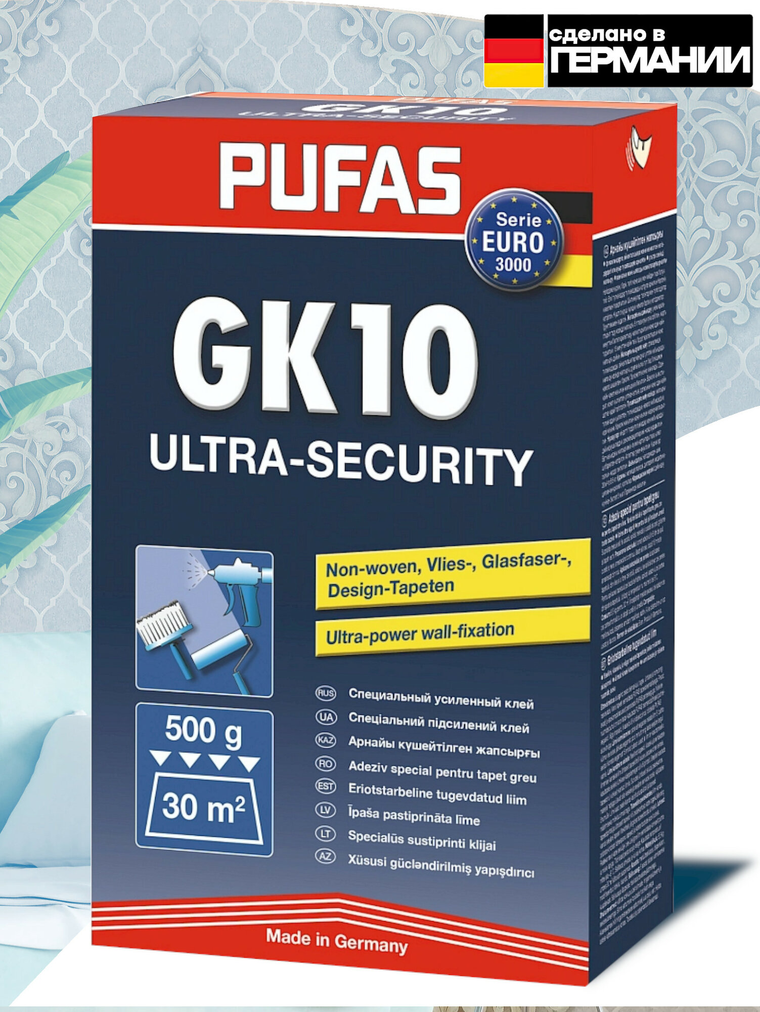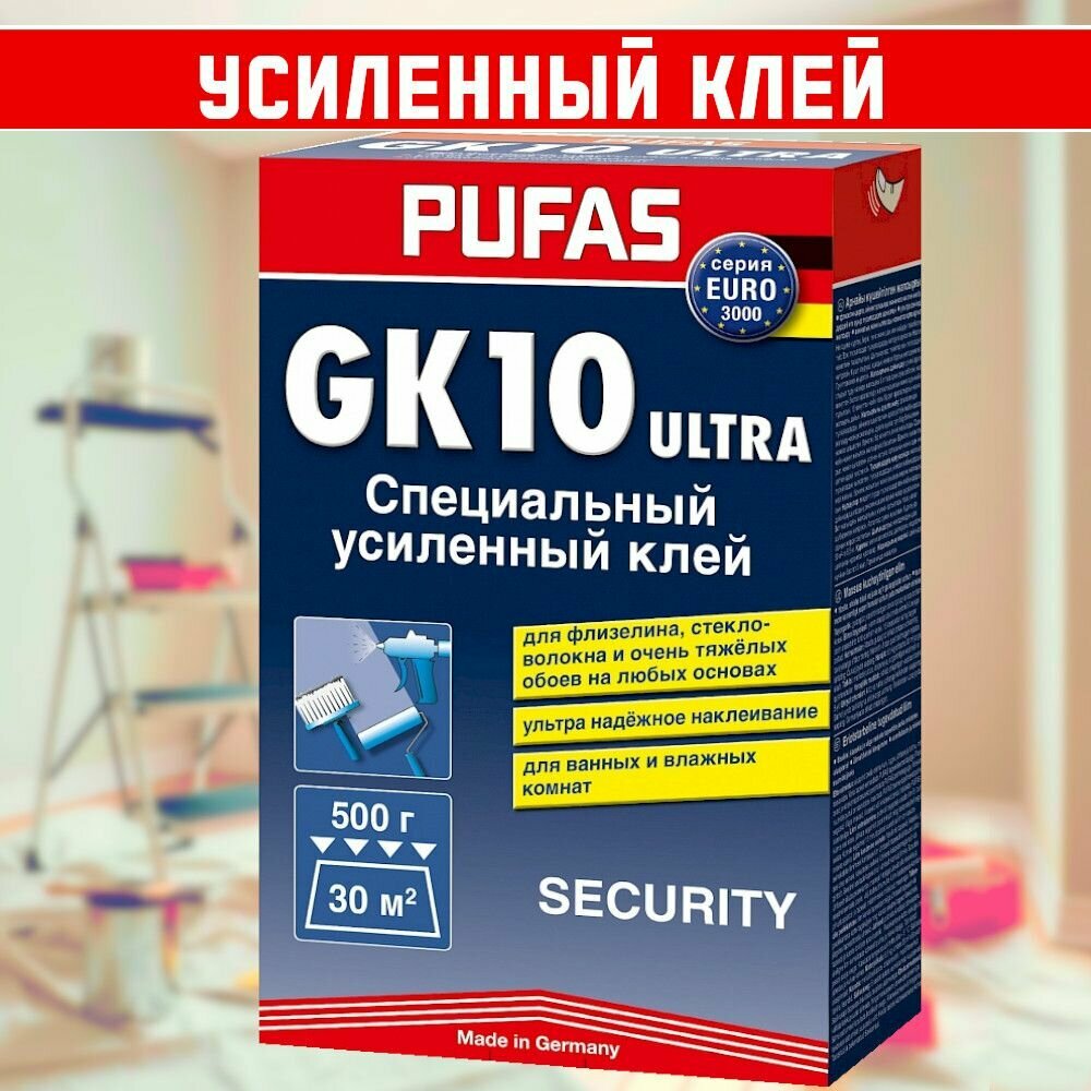 Купить Клей для флизелиновых обоев PUFAS Security GK 10 для стекловолокна и флизелина 0.5 кг 1 шт.