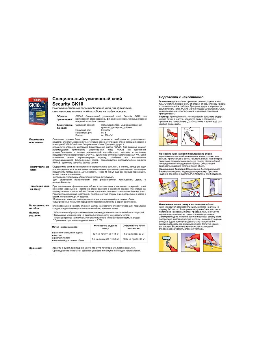 Клей для флизелиновых обоев PUFAS Security GK 10 для стекловолокна и флизелина 1 кг
