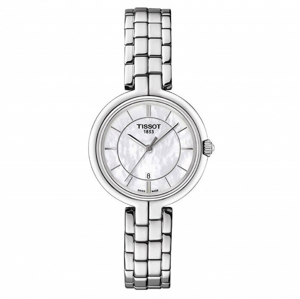 Швейцарские кварцевые часы Tissot Flamingo T094.210.11.111.00 на стальном браслете, с водозащитой 5 бар и международной гарантией от производителя