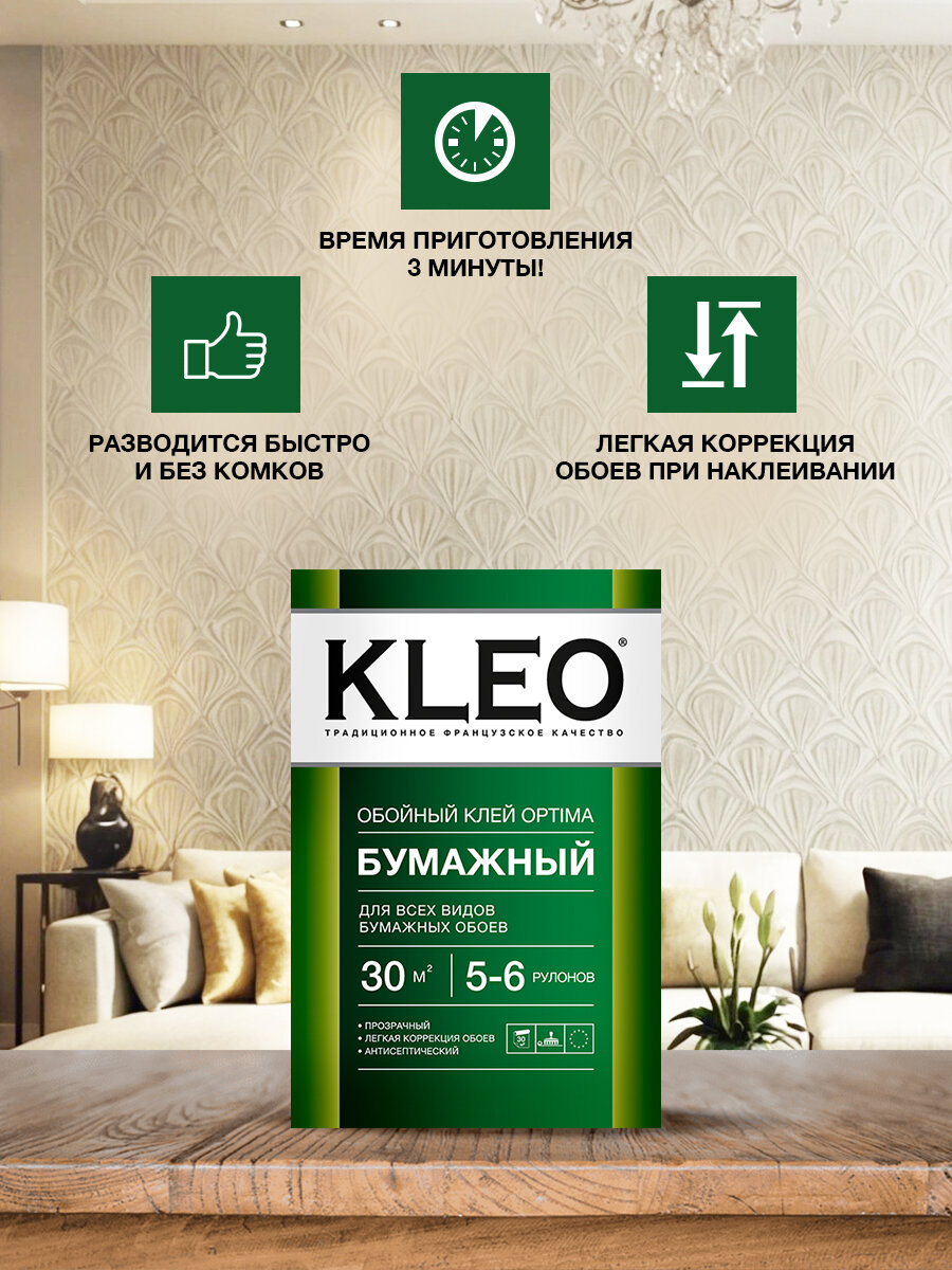 Клей обойный для бумажных обоев KLEO OPTIMA 5-6, 120г, 30 кв.м.