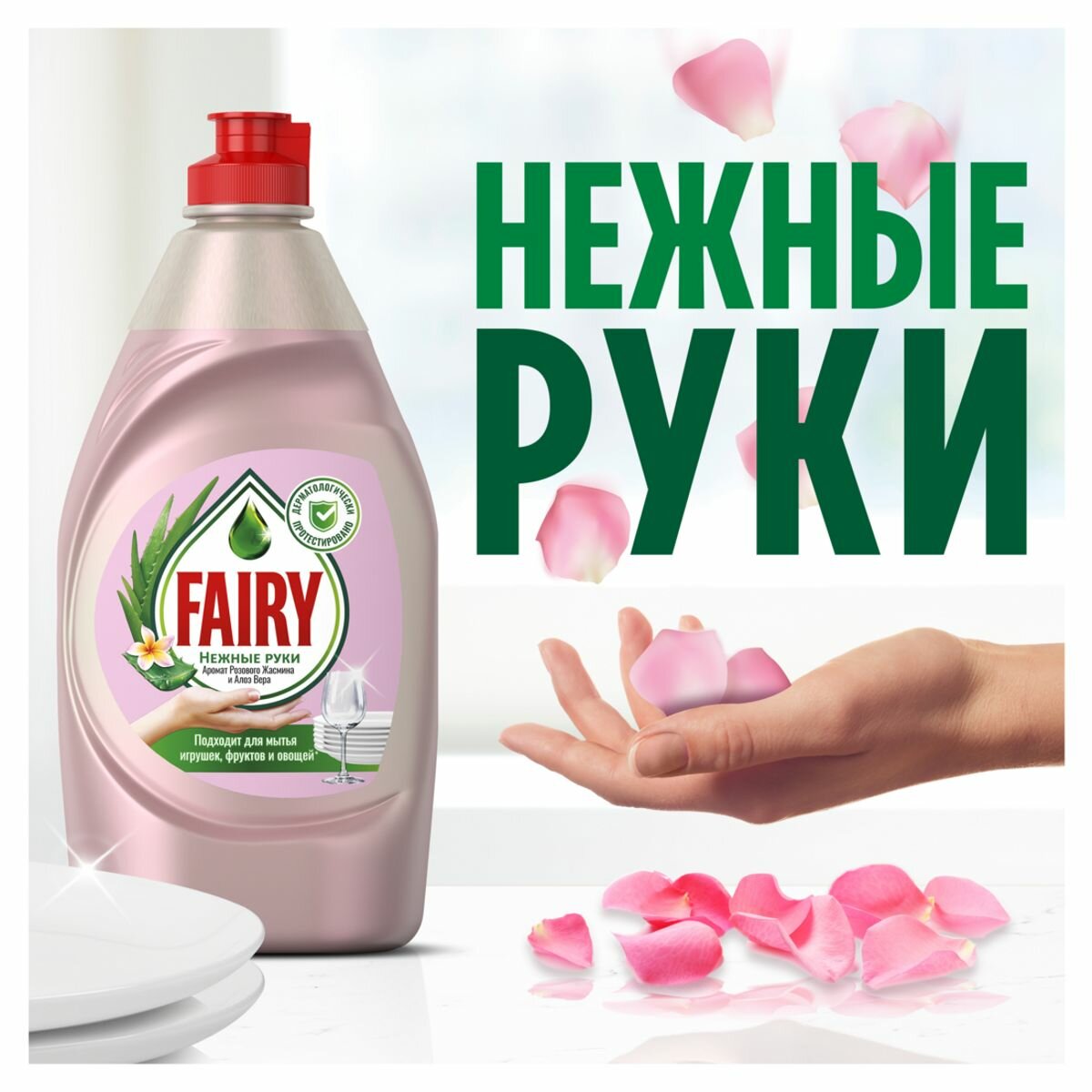 Fairy Средство для мытья посуды Нежные Ручки, Розовый Жасмин и Алоэ Вера, 450 мл