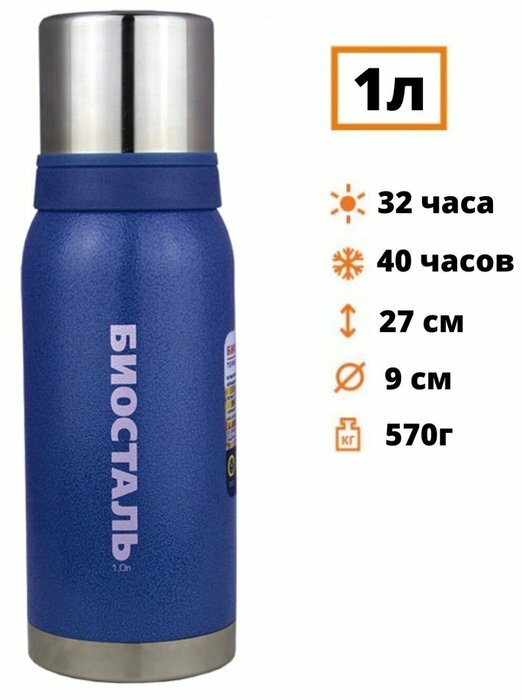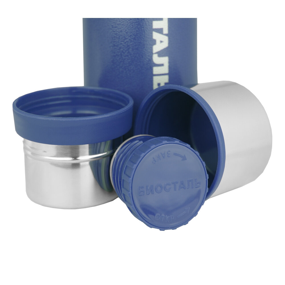 Термос "биосталь-охота" с узкой горл., 2 чашки, синий, 1.0 л. NBА-1000B