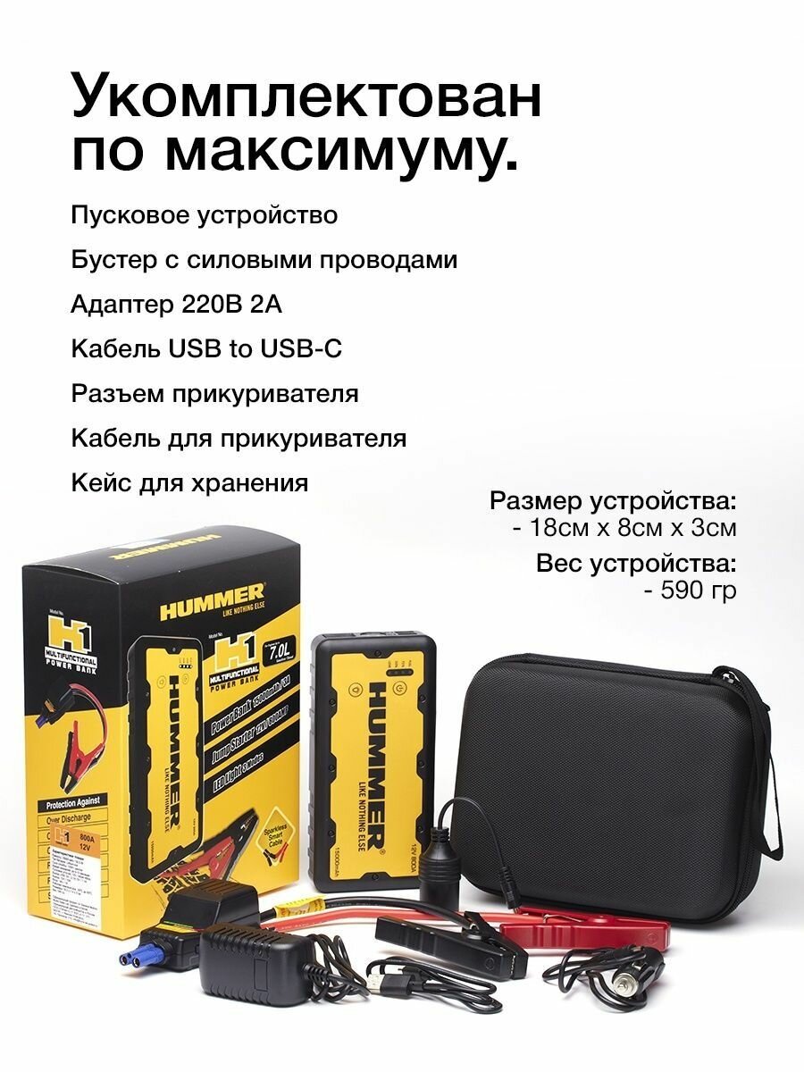 Пусковое устройство для автомобиля HUMMER H1 портативное ПЗУ с LED фонарем / Пуско-зарядное для грузовика и внедорожника, пусковой ток - 800А