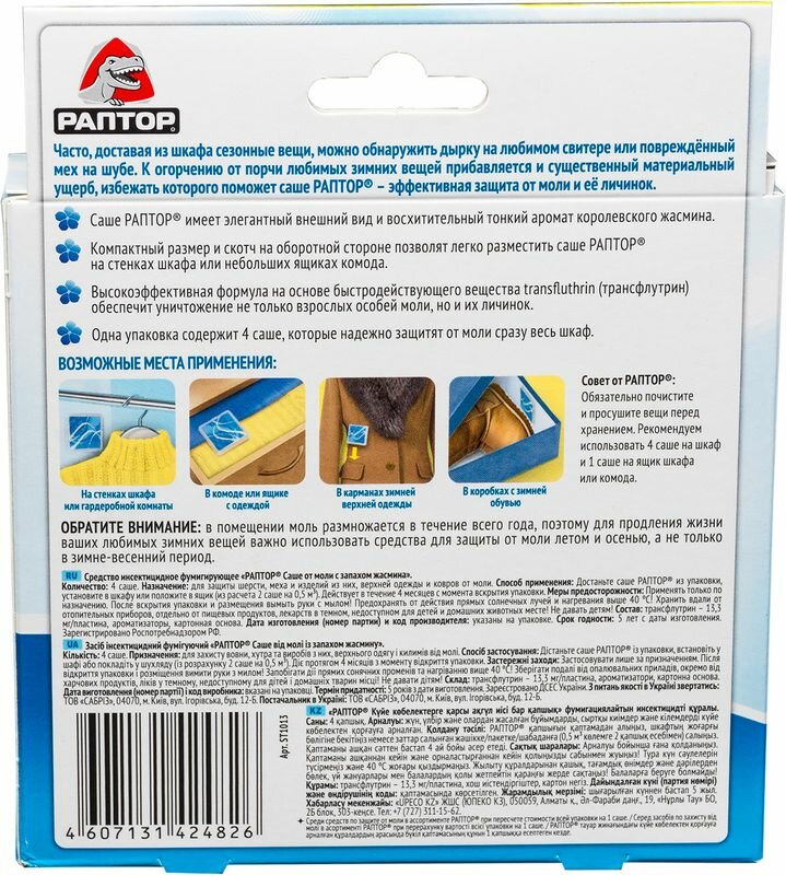 Раптор Саше от моли с запахом жасмина 4 шт интересное: