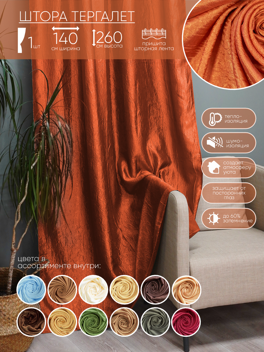 Купить Штора портьерная Тергалет терракот 140*260 1шт