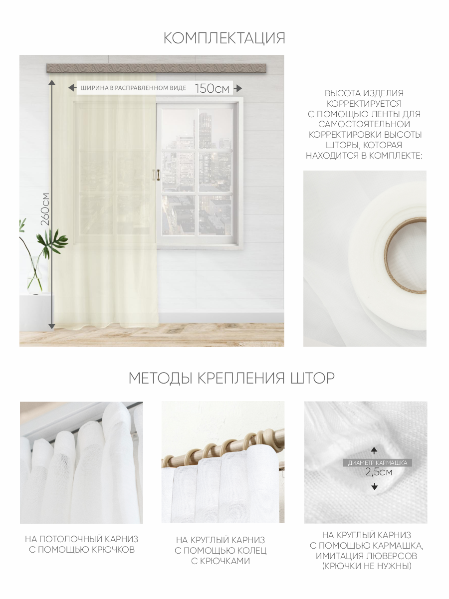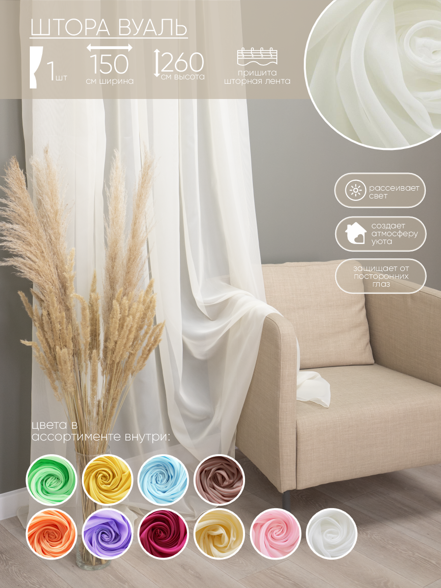 СохранитьШтора Witerra вуаль 150*260 см молочная интересное: