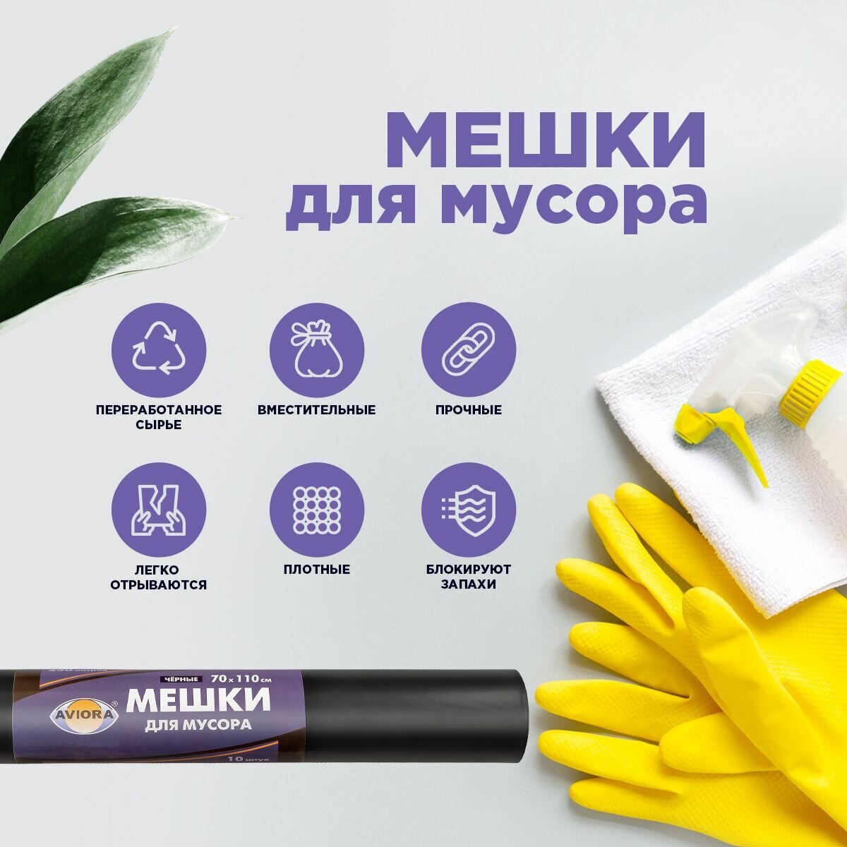 Мешки для мусора 70 * 110см (120 л - 35 мкм) ПВД AVIORA чёрные, рулон в бум. уп. интересное: