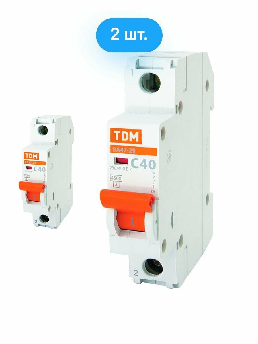 Купить Автоматический выключатель TDM Electric ВА47-29 1P 40А характеристика C (комплект из 2 шт.)