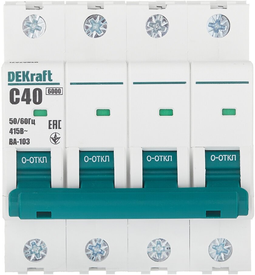 Купить DEKraft Автоматический выключатель 4Р 40А х-ка C ВА-103 6кА, арт.12325DEK