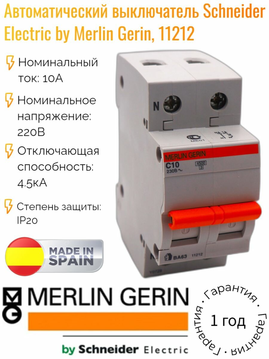 11212 Автоматический выключатель Schneider Electric Домовой ВА63 10А 2п (1P+N), 4.5кА, C