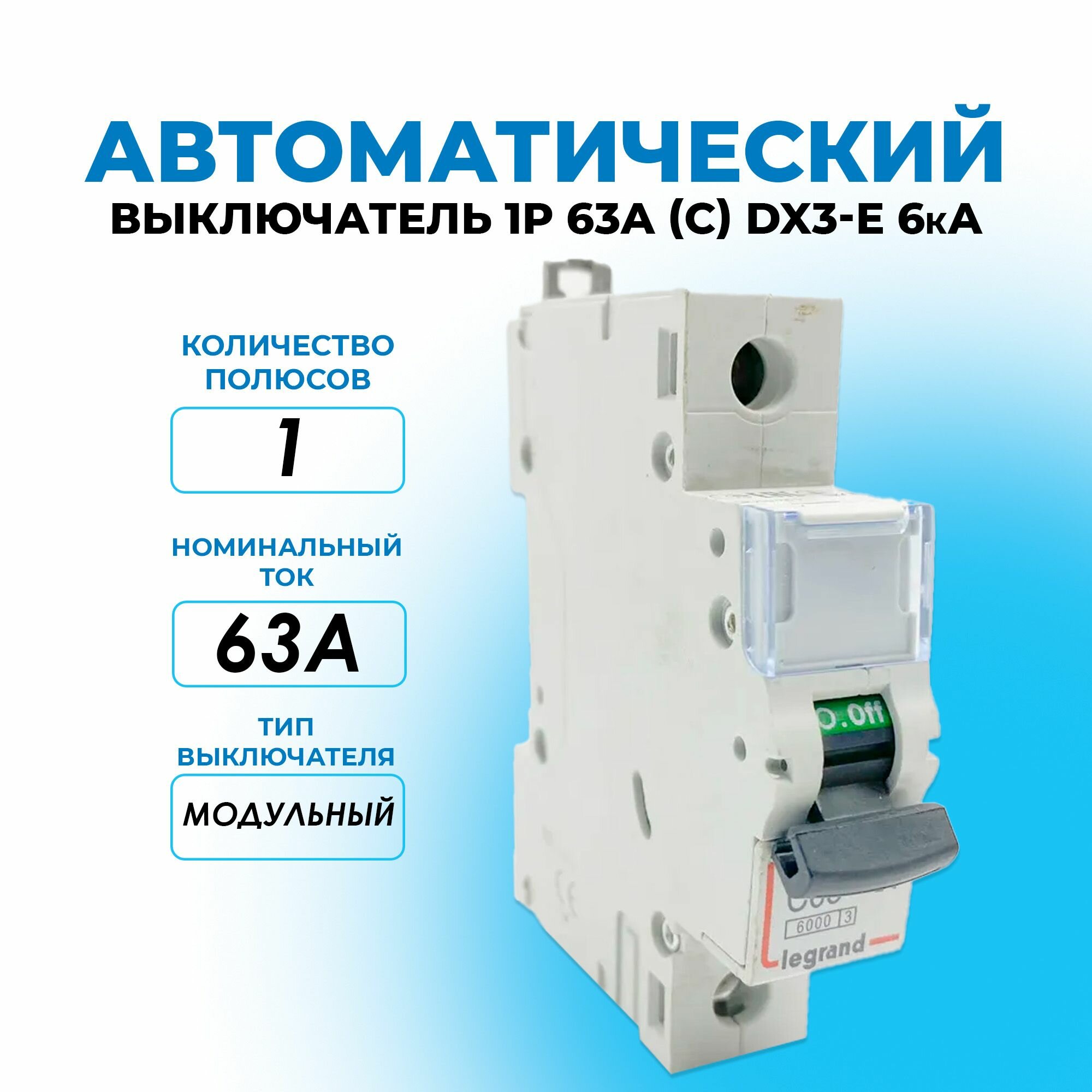 Выключатель автоматический модульный 1п C 63А 6кА DX3-E 6000 1мод. 230/400В Leg 407269 (1 шт.)