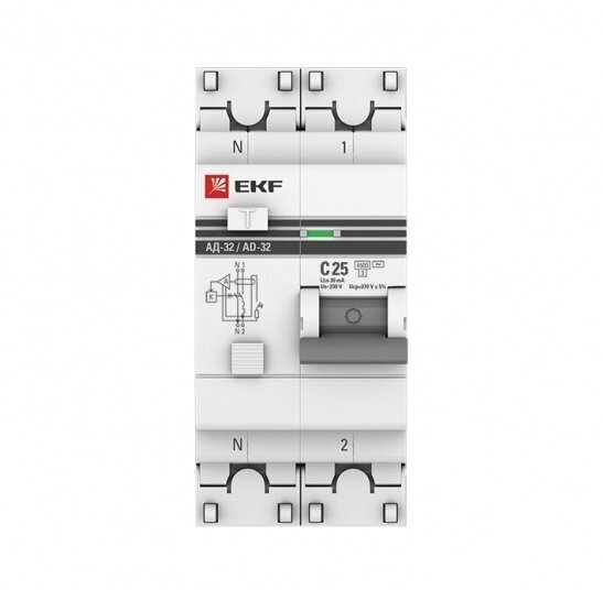 Выключатель автоматический дифференциального тока 1п+N 2мод. C 25А 30мА тип AC 4.5кА АД-32 PROxima, EKF DA32-25-30-PRO (1 шт.)