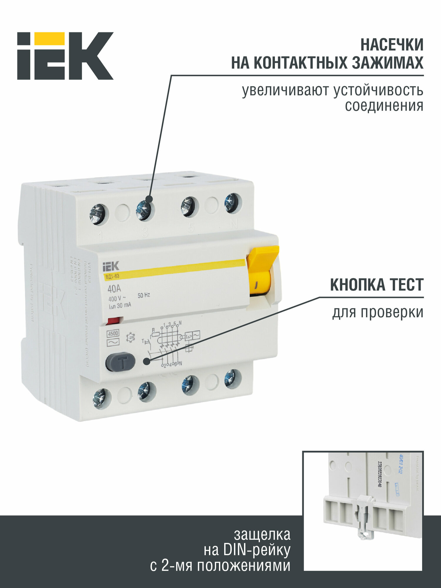 УЗО ВД1-63 4Р 63А 30мА IEK (Оригинал)