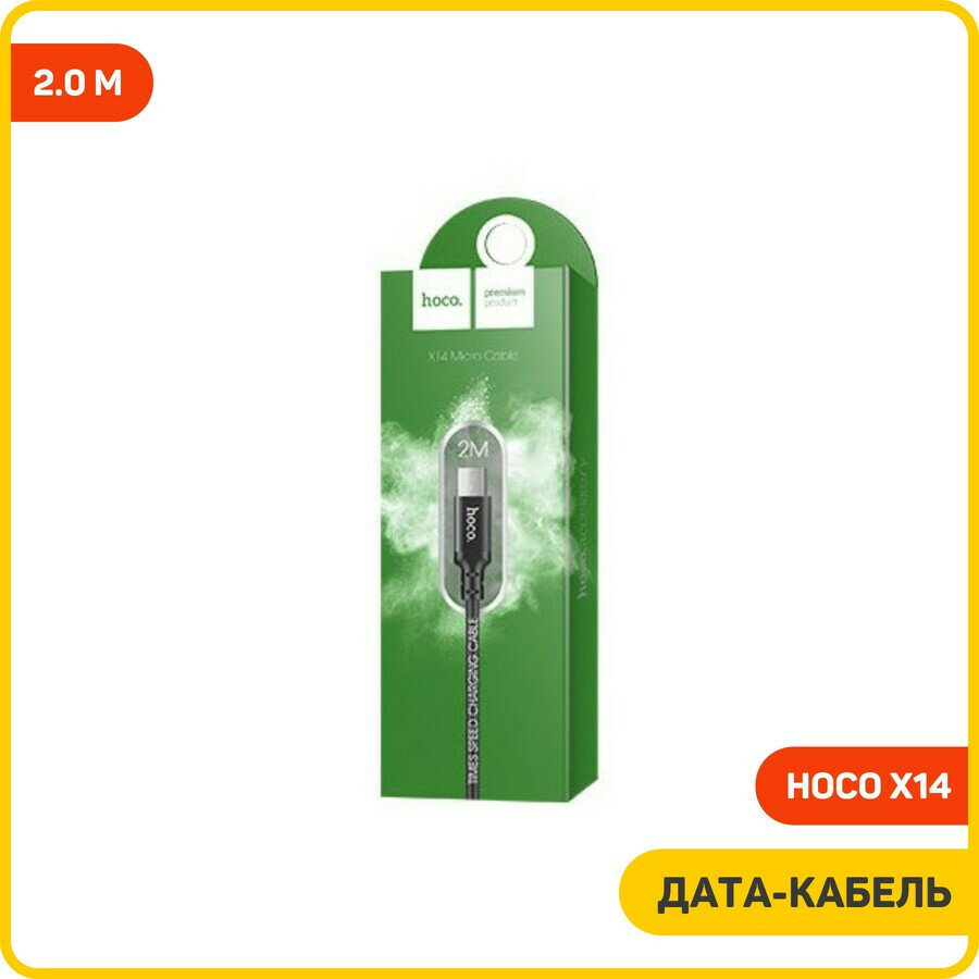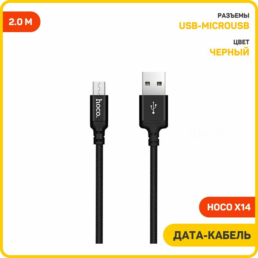 Дата-кабель Hoco X14 USB-MicroUSB, 2 м, черный