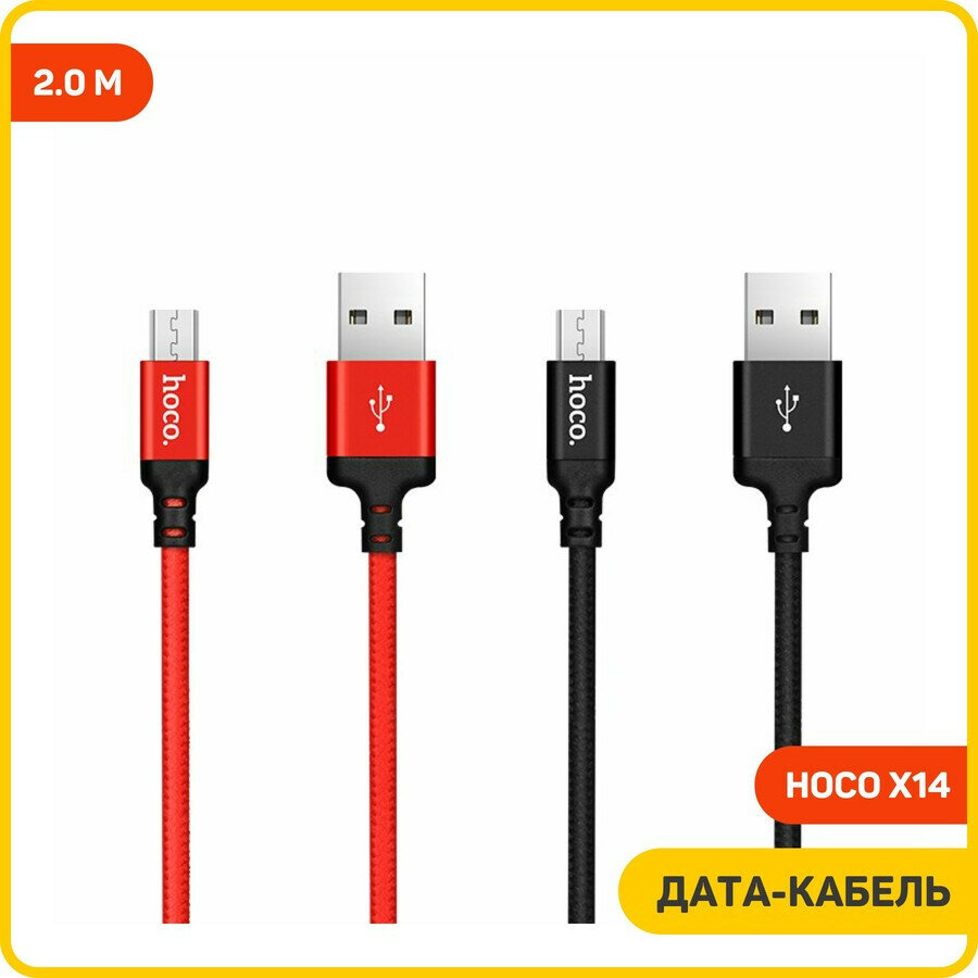 Кабель USB 2.0 Hoco X14, AM/microBM, черно-красный, 2 м