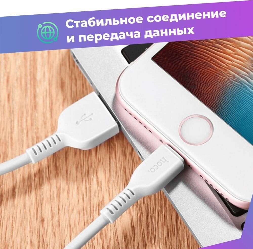 Купить Кабель для iPhone, быстрая зарядка, 1 метр, передача данных / USB провод для iPad airPods / шнур для разъема Lightning / Hoco. X13
