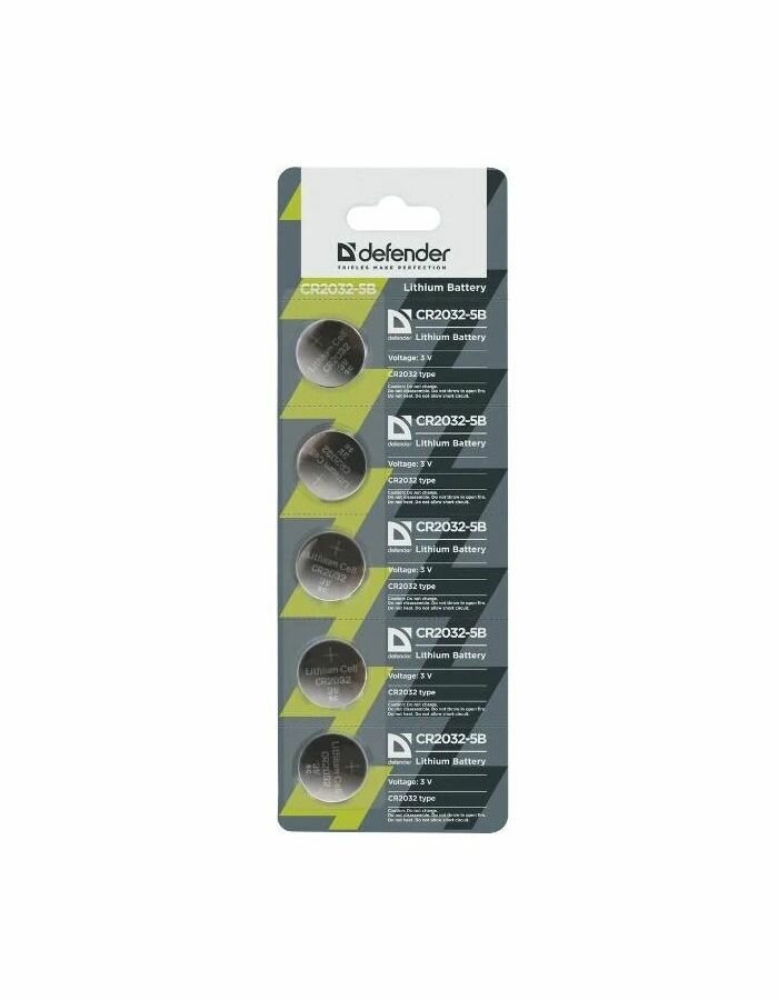 Купить Батарея Defender CR2032-5B,CR2032, 3V, 5 шт