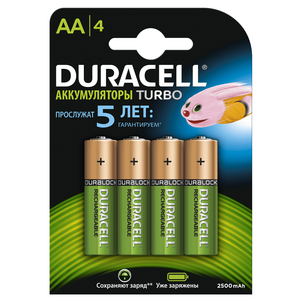 Duracell Аккумулятор Duracell (TURBO) HR6-4BL 2400mAh/2500mAh (AA2500mAh/4BL) предзаряженные (4/40/15000) (4 шт. в уп-ке)
