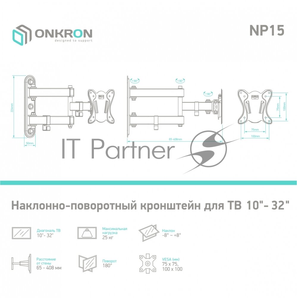 Кронштейн для ТВ ONKRON R4/NP15,диагональ 10"-32" наклонно-поворотный, черный