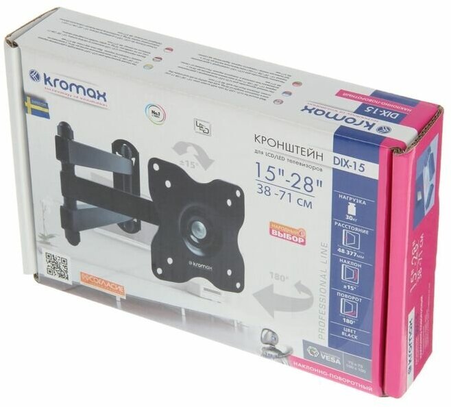 СохранитьКронштейн настенный Kromax DIX-15 Kromax_20202 15-28", макс. 30кг, поворот и наклон, черный интересное: